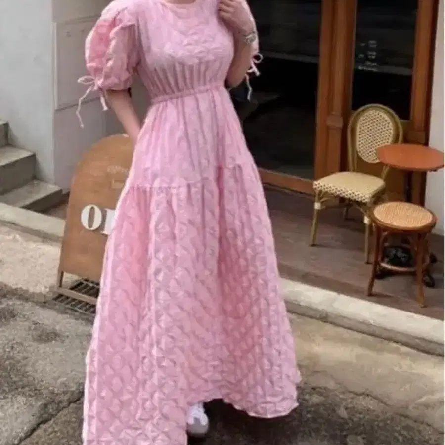 텍스처가 있는 원단을 사용한 핑크 맥시 드레스. 퍼프 슬리브와 프릴 디테일이 특징입니다. - 색상: 핑크 - 스타일: 맥시 드레스 - 소매 디자인: 퍼프 슬리브 - 소재: 텍스처가 있는 원단 - 디자인: 프릴 디테일 방문해 주셔서 감사합니다.