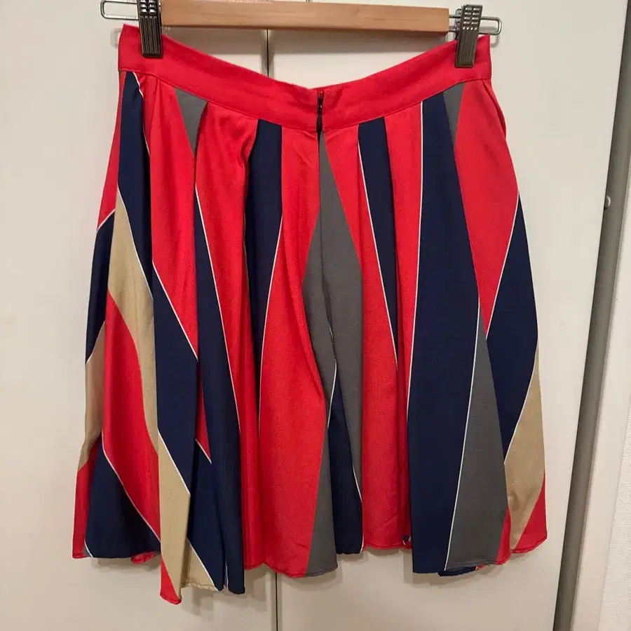 빨간색과 파랑색 스트라이프가 특징인 플레어 스커트. - 색상: 빨간색, 파랑색, 베이지색, 그레이색 스트라이프 - 소재: 폴리에스테르, 안감 있음 - 스타일: 플레어 스커트 방문해 주셔서 감사합니다. 사이즈 - FREE SIZE