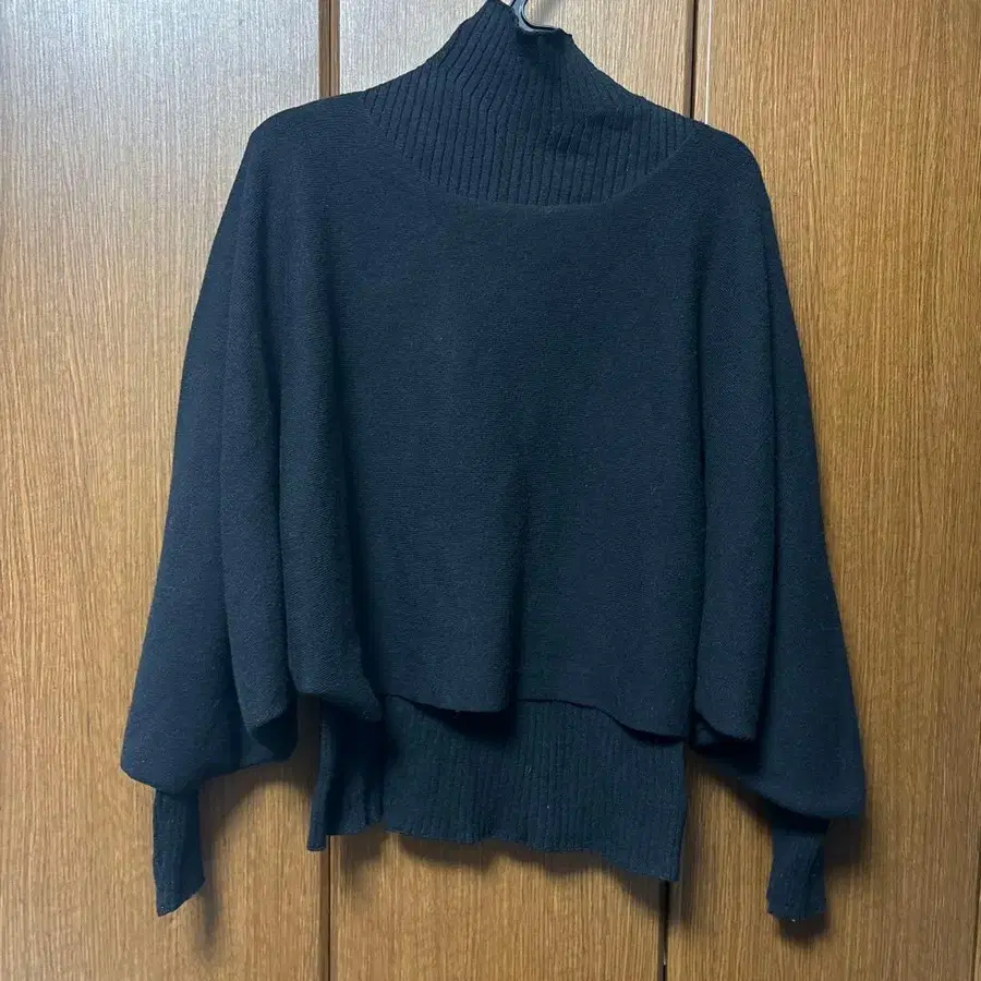 LASUD 블랙 하이넥 셋업 플레어 슬리브 스웨터