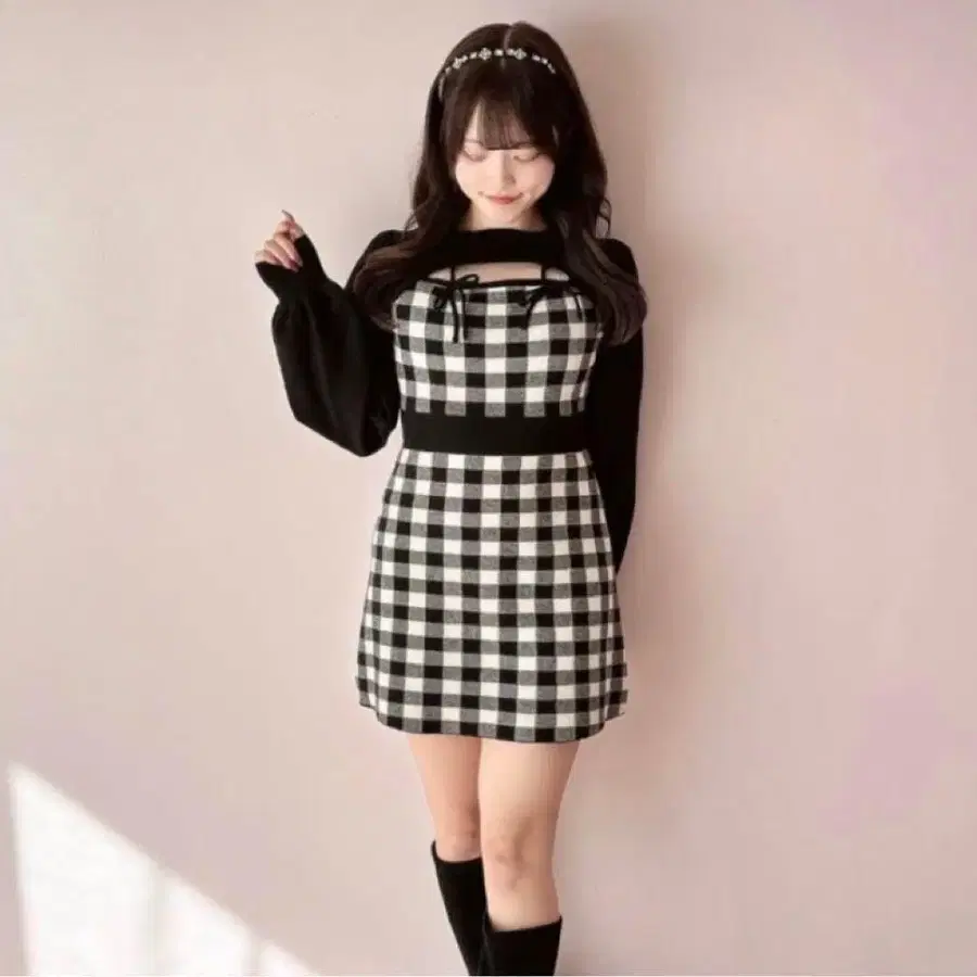 • 페더 체크 앙상블 원피스 LIP SERVICE 립 서비스