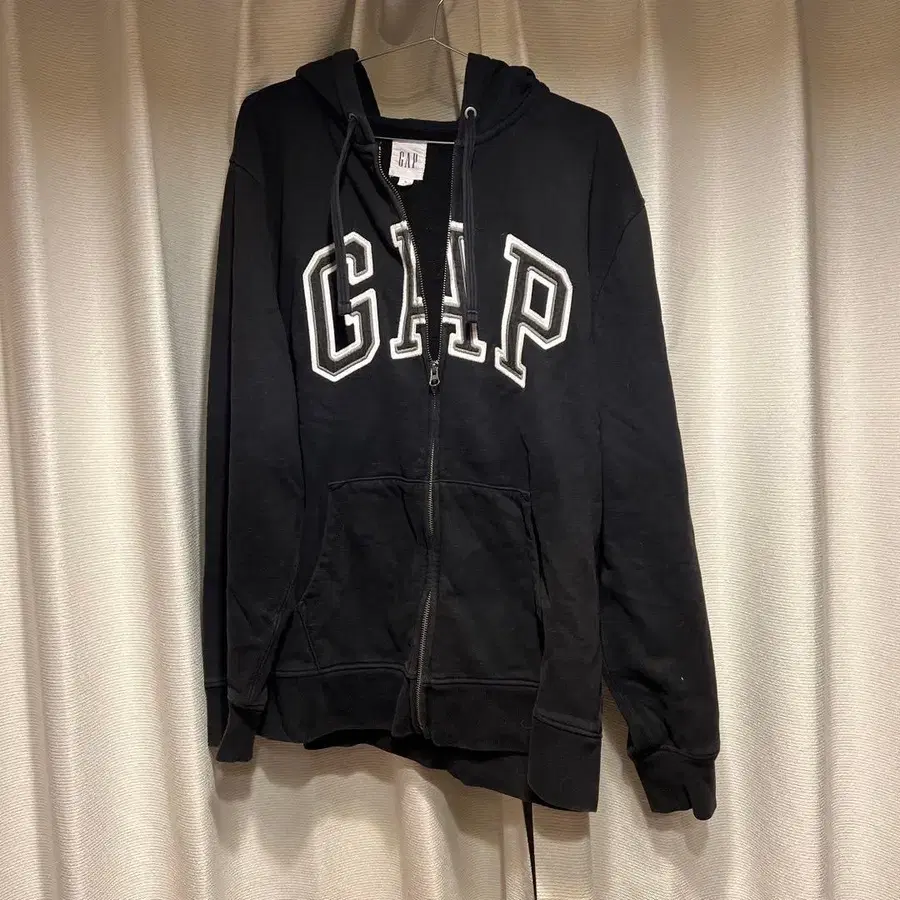 블랙 집업 후드티, GAP 로고 자수 포함.