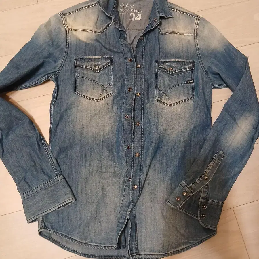 라이트 블루 데님 셔츠, 프론트 포켓 부착, 버튼 업 디자인. - 브랜드: GAS - 스타일: 데님 셔츠 - 색상: 라이트 블루 - 포켓: 프론트 포켓 2개 - 디자인: 버튼 업, 긴팔 방문해 주셔서 감사합니다.