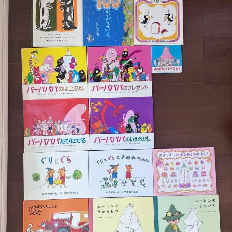 인기 그림책 세트입니다. 베스트셀러인 '바다 100층짜리 집', '10층짜리 공주님 성', '바바파파', '구리와 구라', '진흙탕 해리', '소방차 지프타', '무민' 등 모두 베스트셀러 명작들입니다. '바바파파의 선물'은 책의 색지 부분이 테이프로 보강되어 있으며, 뒤쪽에 스티커가 붙어 있습니다. '바바파파의 선물'과 '집 찾기'는 커버가 없습니다. '구리와 구라', '지프타'는 원래 커버가 없습니다. '무민'도 커버에 약간의 스크래치가 있습니다. 하지만 전체적으로 새 상품급이며 어린이들이 읽기에는 문제가 없을 것 같습니다. 아이가 사용했던 것으로, 어느 정도 사용감이 있다는 점을 이해해 주시는 분께 부탁드립니다. 명작들만 모여 있어 추천합니다. ※ '호기심 많은 조지'의 '흉내쟁이 네코'와 '노란 모자'도 있지만, 이 상품은 책등의 손상이 심한 편이라 희망하시는 분께 덤으로 드립니다. 14권에는 포함되지 않습니다. 1권당 300엔으로 저렴하게 명작을 모을 수 있어, 아이들의 그림책 입문용으로도 추천합니다.