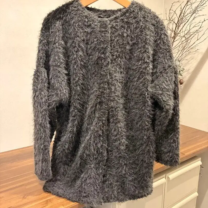 택이 없지만, 미사용 새상품입니다. 샤기 니트 오버 사이즈 가디건으로, 부드럽고 따뜻한 소재감이 특징입니다. - 색상: 그레이 - 소재: 폴리에스테르 - 스타일: 오버 사이즈 - 소매 길이: 긴팔 잘 부탁드립니다.