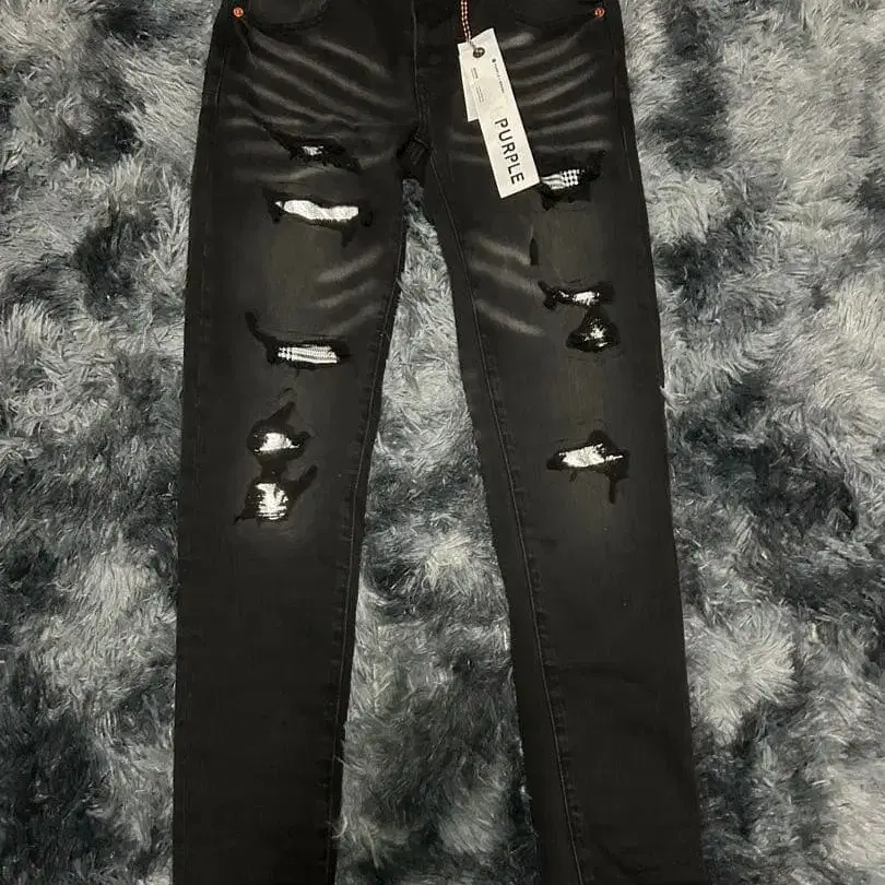 purple 데미지 데님입니다. 몇 번밖에 착용하지 않아 흠집이나 얼룩은 전혀 없습니다. 택 포함입니다. 가격 인하 접수합니다.