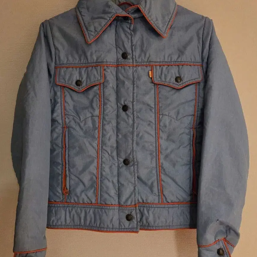 레어한 70년대 미국산 빈티지, 스카이블루 색상의 점퍼에 오렌지 색상 파이핑이 특징인 SKI LEVI'S S 사이즈입니다.