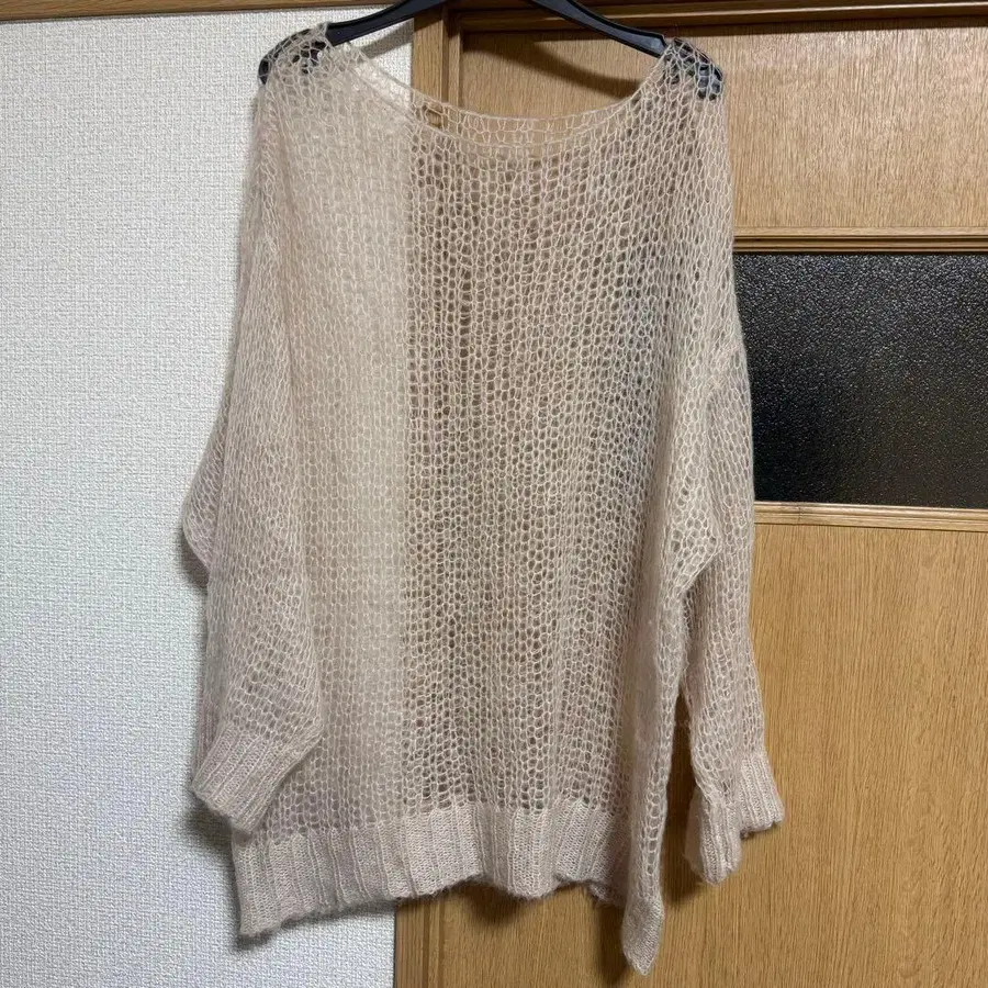 몇 번 사용. 새상품급입니다. 레이어드 스타일에 사용할 수 있는 시어 니트입니다. 기장 약 67cm 모헤어 니트 시어 니트 메쉬 니트