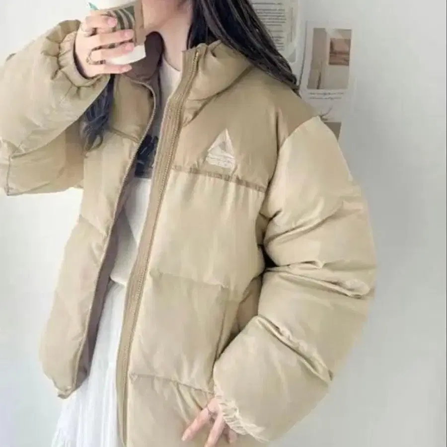 [ GYDA ] 베이지 후드 부착 다운 자켓
