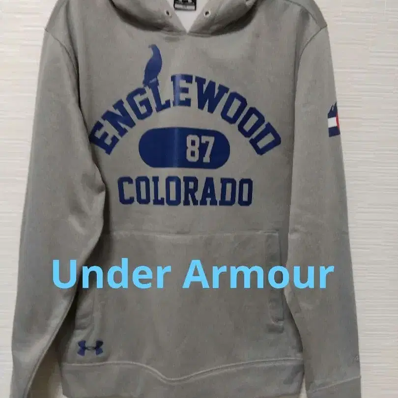 후드 부착 그레이 후드티, ENGLEWOOD COLORADO 87 디자인. 기장 62cm 가슴 너비 51cm - 브랜드: Under Armour - 색상: 그레이 - 디자인: ENGLEWOOD COLORADO 87 - 로고: Under Armour 로고 - 특징: 후드 부착, 포켓 부착 개인 측정이라 오차는 양해 부탁드립니다. 잘 부탁드립니다. 방문해 주셔서 감사합니다.