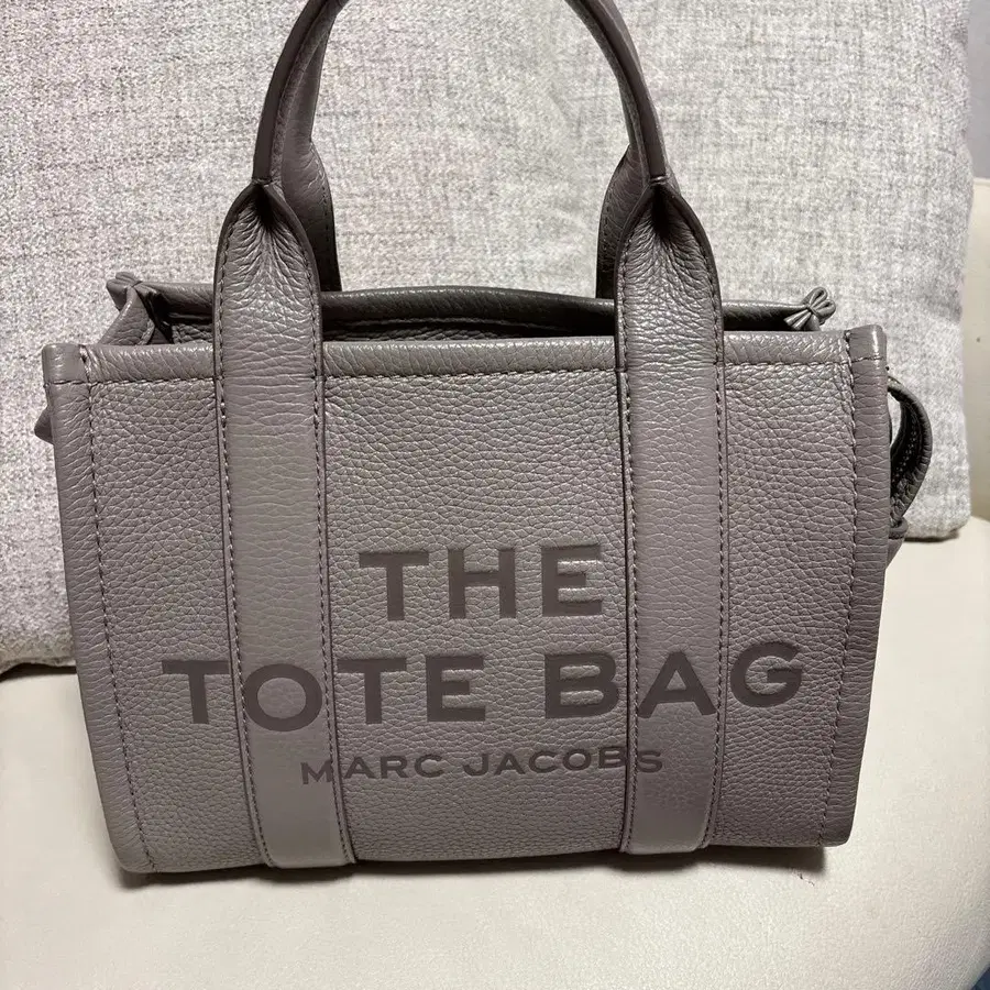 그레이 색상의 가죽 소재, 더블 핸들이 달린 토트백. - 브랜드: MARC JACOBS - 모델명: THE TOTE BAG - 색상: 그레이 - 핸들: 더블 핸들 - 소재: 가죽 방문해 주셔서 감사합니다. 수납 가방 포함입니다.