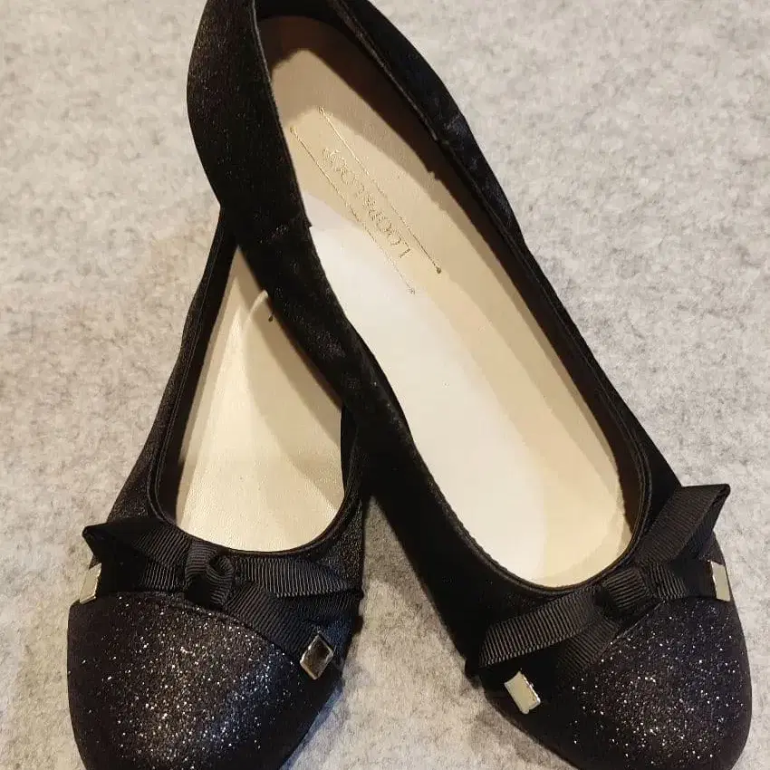글리터 소재의 블랙 플랫슈즈, 리본 포함 디자인으로 엘레강트. - 색상: 블랙 - 소재: 글리터 라메 - 디자인: 리본 포함 - 스타일: 플랫슈즈 사이즈는 M이지만, 24cm에 가까운 23.5cm인 제가 신었을 때 작았으므로 23cm일 것으로 생각됩니다. 전용 상자는 없습니다. 익명 배송이므로 반품 및 환불은 불가합니다. 이해해 주시는 분만 구매 부탁드립니다.