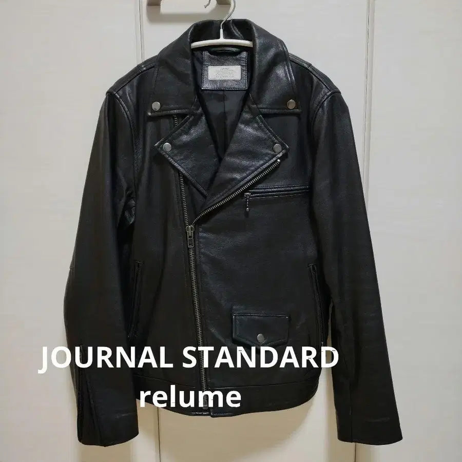 블랙 가죽 더블 라이더 자켓, 지퍼 포켓 부착으로 스타일리시.