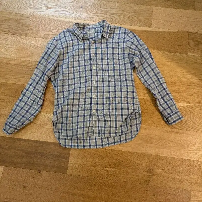 자동 번역되었어요. 원문보기MARGARET HOWELL의 S 사이즈, 블루 계열 체크 무늬 긴팔 셔츠.