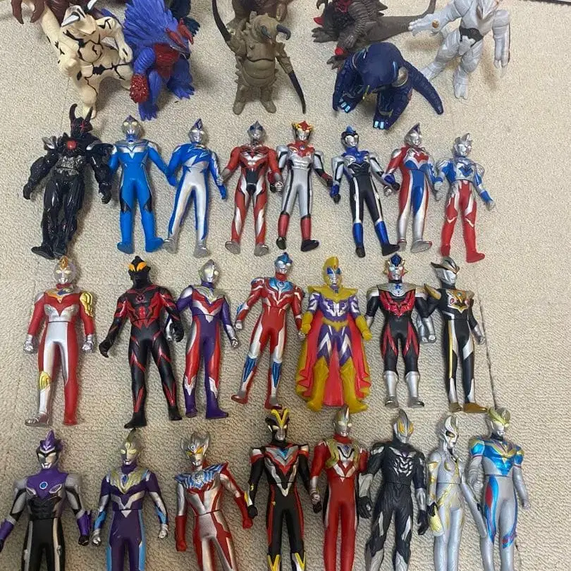 다채로운 울트라맨 피규어와 특촬물 몬스터 세트, 약 30개의 컬렉션. - 피규어 종류: 울트라맨 피규어 - 피규어 수: 울트라맨 23개, 괴수 9개 - 몬스터 종류: 특촬물 몬스터 - 사이즈: 약 15cm 방문해 주셔서 감사합니다. 아이가 좋아해서 모았었는데, 졸업하게 되어 일괄로 양도합니다. 알코올 소독 후 발송합니다.