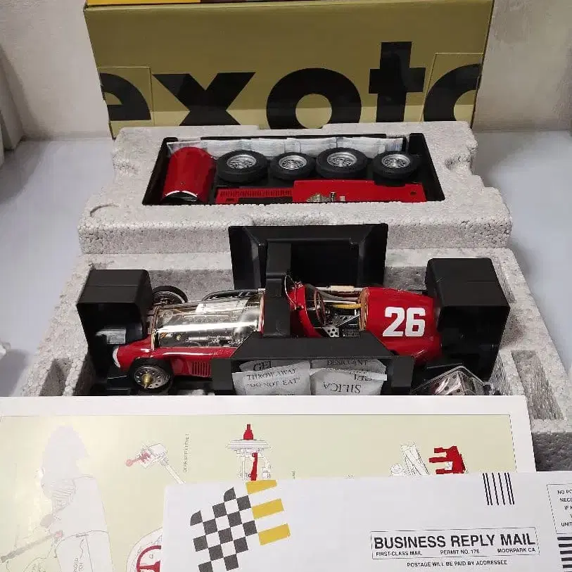 정교한 1/18 스케일 Exoto 159, 투명 엔진 커버 포함, 상세한 내부 구조가 매력적입니다. - 브랜드: Exoto - 모델: 159 - 색상: 레드 - 스케일: 1/18 - 특징: 투명 엔진 커버 - 넘버: 26 - 부속품: 설명서 방문해 주셔서 감사합니다.