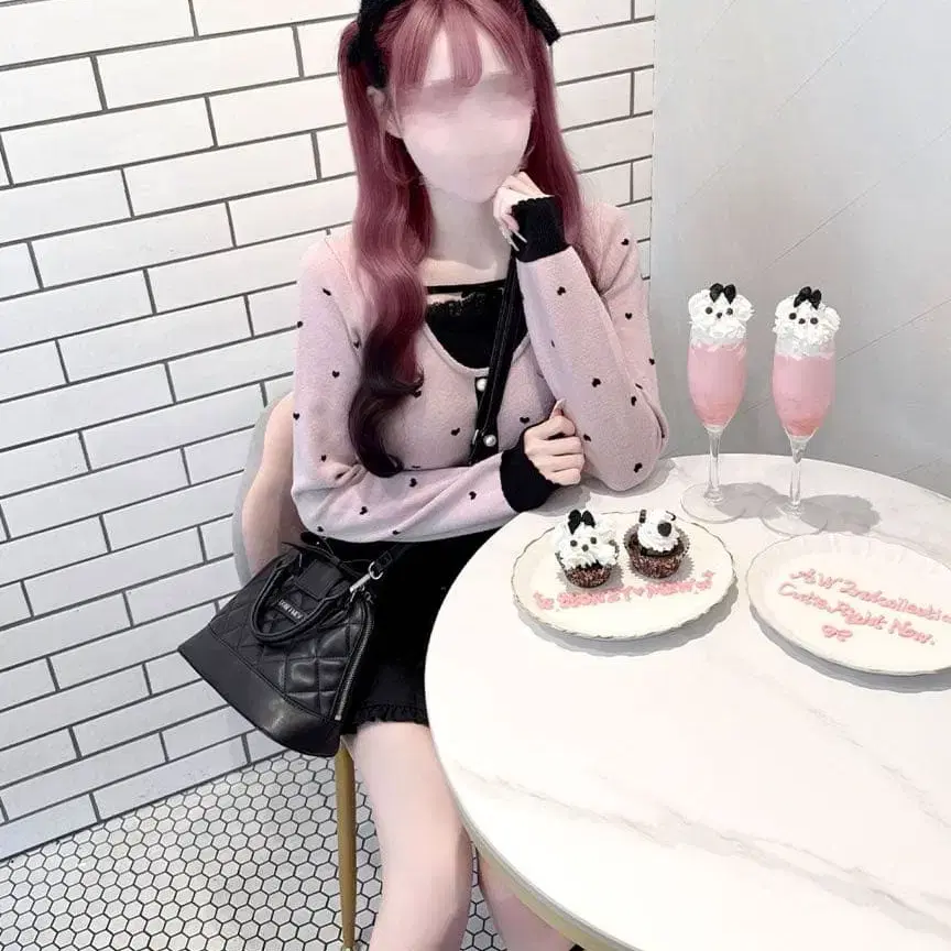허니뮤우 HONEY MEW Luv 초커 포함 상의 핑크 그레이
