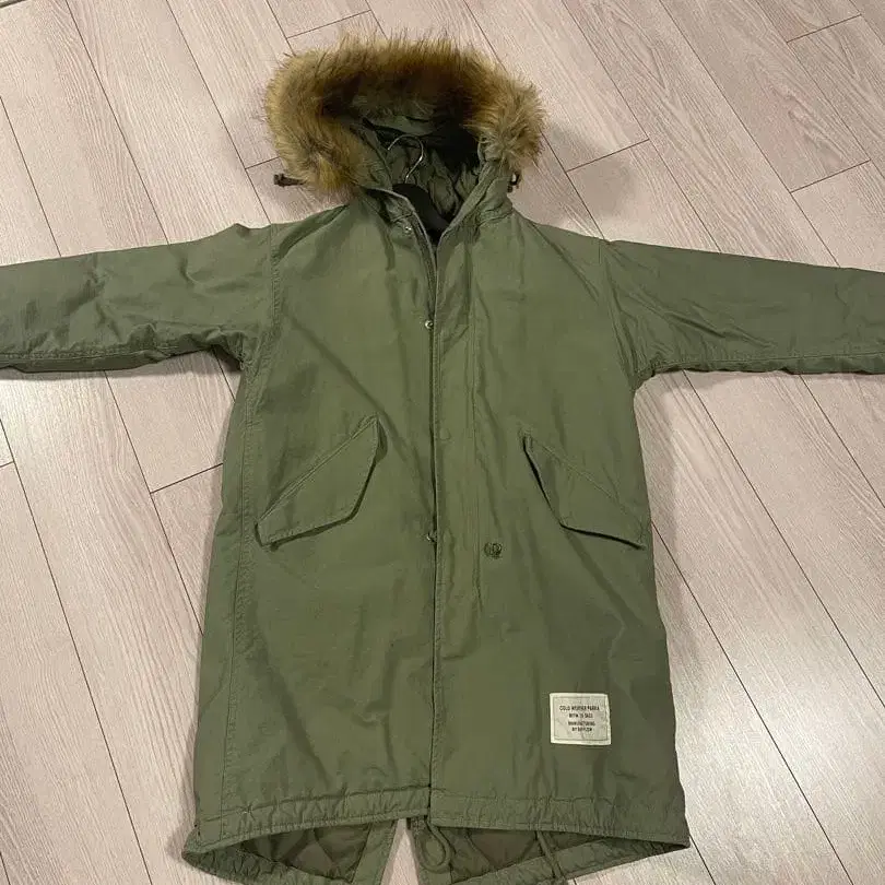 [ 새상품급 ] BAYFLOW 베이플로우 콜드 웨더 후드티 / 모즈 코트 BAYFLOW (베이플로우)의 스테디셀러 밀리터리 아이템, 콜드 웨더 후드티입니다. 본격적인 디테일을 살리면서 현대적인 실루엣으로 업그레이드된 상품입니다. 라이너의 입고 벗기가 가능하여 가을, 겨울, 봄 3 시즌 동안 길게 착용하실 수 있습니다. ■ 상품 특징 • 3WAY 사양: 충전솜이 들어간 퀼팅 라이너는 탈부착 가능합니다. 기온에 맞춰 조정할 수 있어 매우 유용합니다. • 퍼 완비: 후드의 퍼도 결품 없이 깨끗한 상태입니다. • 디자인: 피쉬테일 사양의 밑단 등 빈티지 M-51을 연상시키는 클래식한 디자인. ■ 상품 상세 정보 • 브랜드: BAYFLOW (베이플로우) • 모델번호: BM1911SK03 • 색상: 카키 (올리브) • 사이즈: 2 (S~M 상당) • 넉넉한 사이즈감으로 평소 M 사이즈를 입으시는 분도 저스트로 입으실 수 있는 사이즈감입니다. • 소재: * 겉감: 면 100% • 안감: 폴리에스테르 100% • 라이너: 폴리에스테르 100% (충전솜) ■ 상태 눈에 띄는 얼룩이나 오염 없이 전반적으로 깨끗한 상태입니다. 퍼의 볼륨도 충분히 남아 있습니다. ※ 어디까지나 중고품이므로 이해가 있는 분만 구매 부탁드립니다.