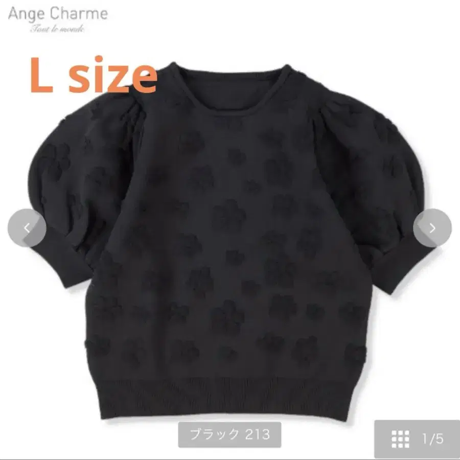 플라워 무늬 퍼프 슬리브 니트탑, 블랙 컬러.
