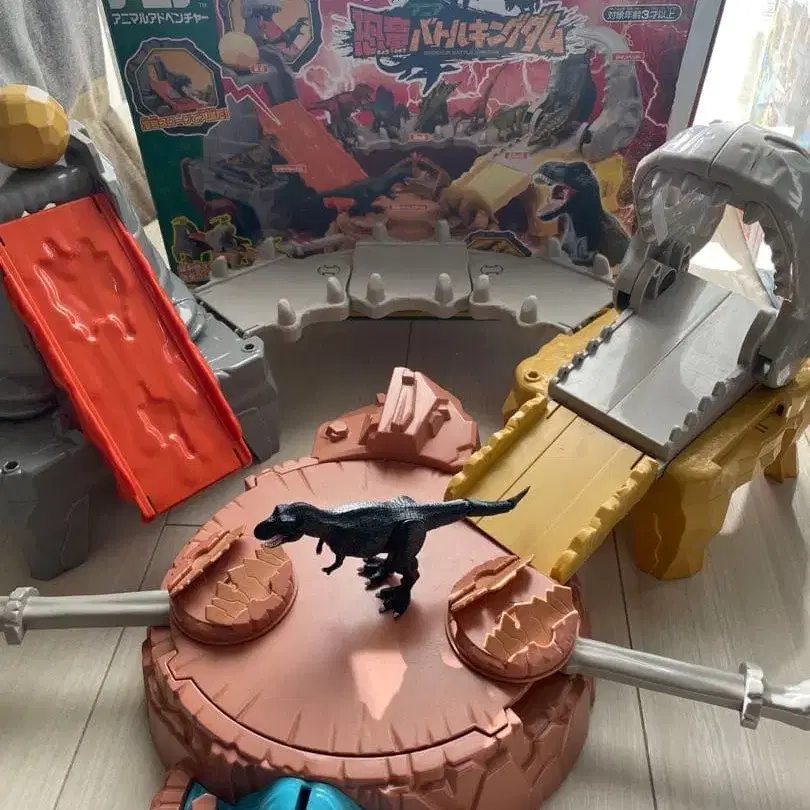 미끄럼틀이 있는 공룡 배틀 세트, 티라노사우루스 피규어 포함. - 브랜드: 타카라토미 - 모델명: 공룡 배틀 세트 - 부속품: 공룡 피규어 (티라노사우루스) - 특징: 미끄럼틀이 있는 배틀 지역 방문해 주셔서 감사합니다. 블랙 티라노사우루스가 부속되어 있지만, 꼬리 부분이 다소 빠지기 쉬운 점 참고 부탁드립니다.