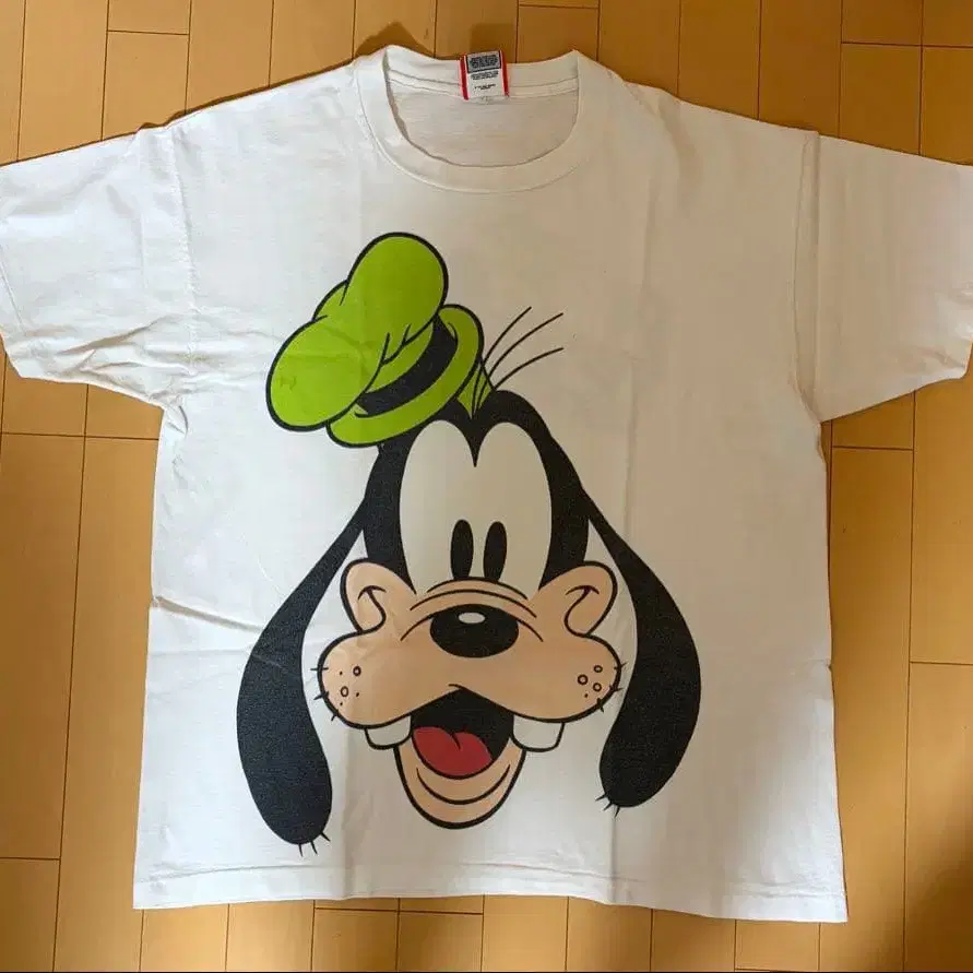 구피의 얼굴이 특징인 T셔츠입니다. 중고품으로 구매했으나 사이즈가 맞지 않아 판매합니다. 일부 색이 바랜 부분이 있습니다.