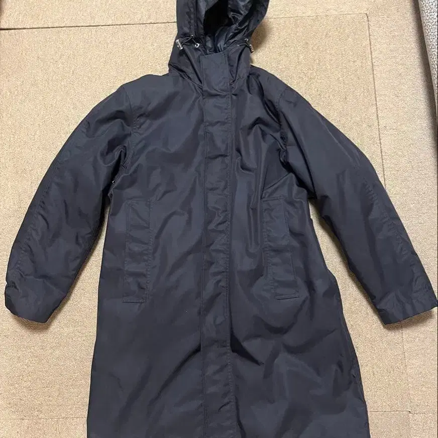 후드 부착 블랙 다운 자켓, 충전솜으로 보온성이 뛰어난 퀼팅 디자인. - 색상: 블랙 - 디자인: 후드 부착, 지퍼와 스냅 버튼 개폐 - 내부: 충전솜, 퀼팅 디자인 - 포켓: 외부에 큰 포켓 있음 안쪽 다운은 탈부착 가능합니다(사진 4). 허리는 조여서 깔끔하게 연출할 수 있습니다(사진 7). 입어보고 마음에 들지 않았는지 거의 입지 않아 매우 깨끗하지만, 자택 보관이라는 점에 이해가 있는 분께 부탁드립니다. 방문해 주셔서 감사합니다. 색상 - 블랙 계열 소재(충전재) - 다운, 페더 얼룩, 찢김, 냄새 등 - 없음