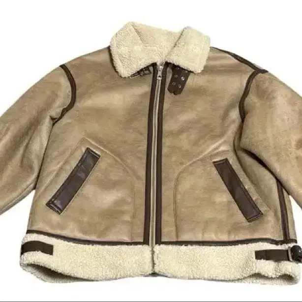 베이지 무스탕 코트 지퍼 포함