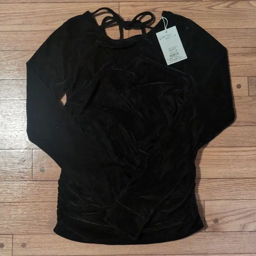 Ungrid 백 오픈 시어 벨로아 롱 슬리브 Tee 프리 사이즈 블랙
