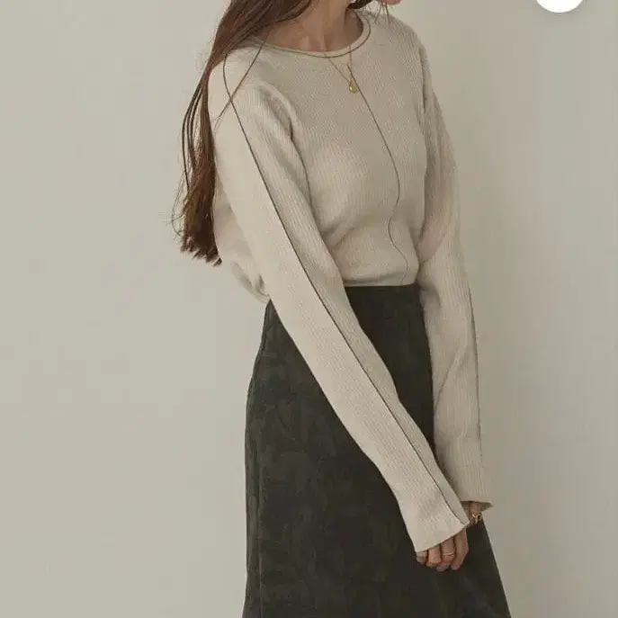 리브 편직 베이지 긴팔 스웨터 새상품