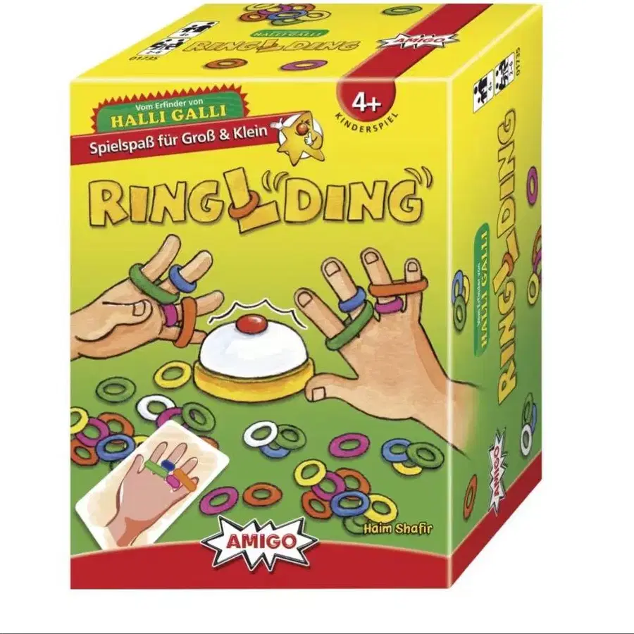 4세 이상을 위한 즐거운 보드게임, 링을 사용한 속도감 넘치는 게임입니다. 발송은 내용물만 가능합니다. 이해해 주시는 분만 구매 부탁드립니다. - 브랜드: Amigo Spiel + Freizeit - 상품명: Ring Ding - 대상 연령: 4세 이상 - 내용물: 반지, 카드, 벨 - 게임 종류: 보드게임 방문해 주셔서 감사합니다.