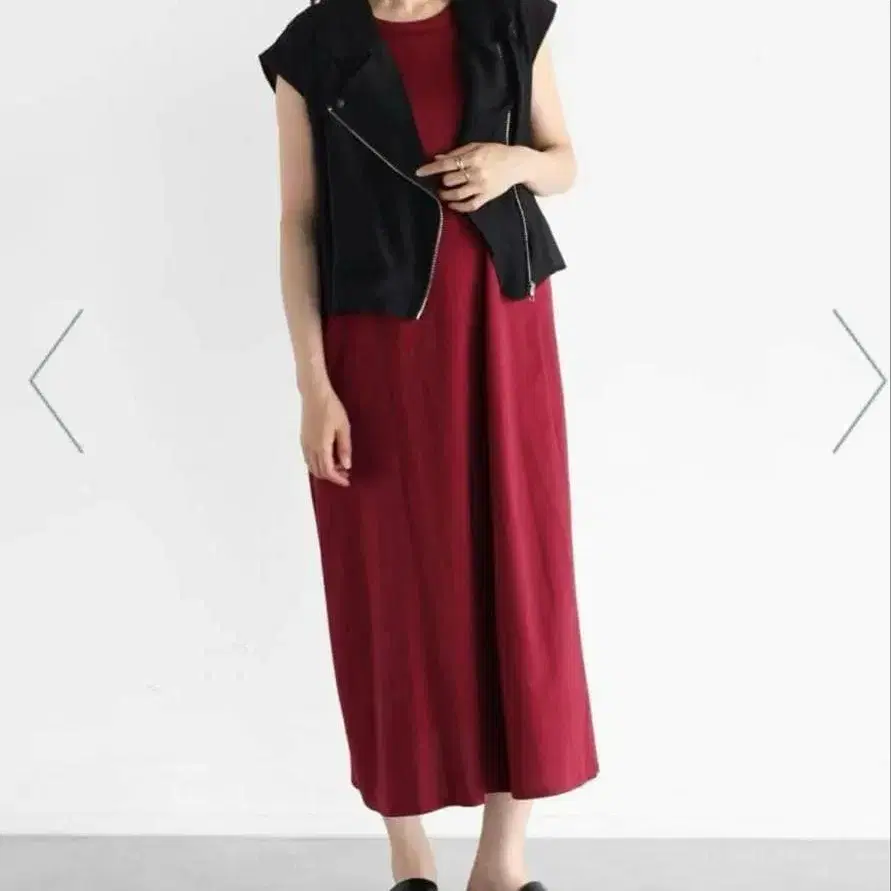 경량 소재의 와인 레드 슬리브리스 롱 원피스