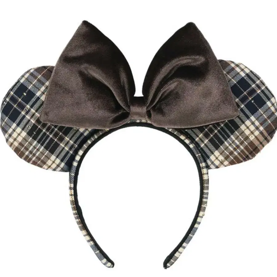 미키 귀 체크 무늬 머리띠
