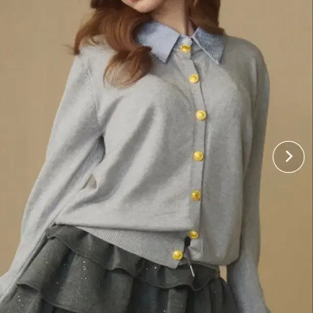 스카이블루 색상의 옷깃이 특징인 그레이 색상의 버튼 가디건. 시착만 한 상품, 택 없음. - 색상: 그레이 - 디자인: 버튼 가디건 - 옷깃 색상: 스카이블루 - 소재: 니트 방문해 주셔서 감사합니다. 사이즈 - M