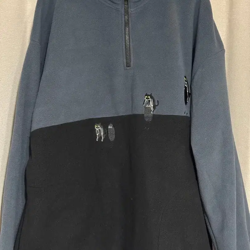 고양이 자수가 특징인 집업 트레이닝복입니다. 특징적인 고양이 자수가 귀엽고, 속기모로 촉감도 좋으며 따뜻하게 입을 수 있습니다. - 색상: 그레이와 블랙의 바이컬러 - 디자인: 집업 스타일 - 특징: 고양이 자수 디자인 - 스타일: 캐주얼 사이즈 - L