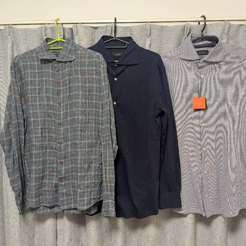 어바하우스에서 구매한 긴팔 셔츠 3점 묶음 판매입니다. 왼쪽 체크무늬와 가운데 파란색 셔츠는 몇 번 착용했습니다. 오른쪽 셔츠는 택 포함 새상품입니다. 참고로 오른쪽 두 개는 RECENCY OF MINE이라는 고급 라인의 셔츠입니다. 모두 정가 2만 엔 정도였으므로 합쳐서 6만 엔 정도의 셔츠가 됩니다. 매우 저렴하게 구매하시는 거라고 생각합니다. 잘 부탁드립니다.