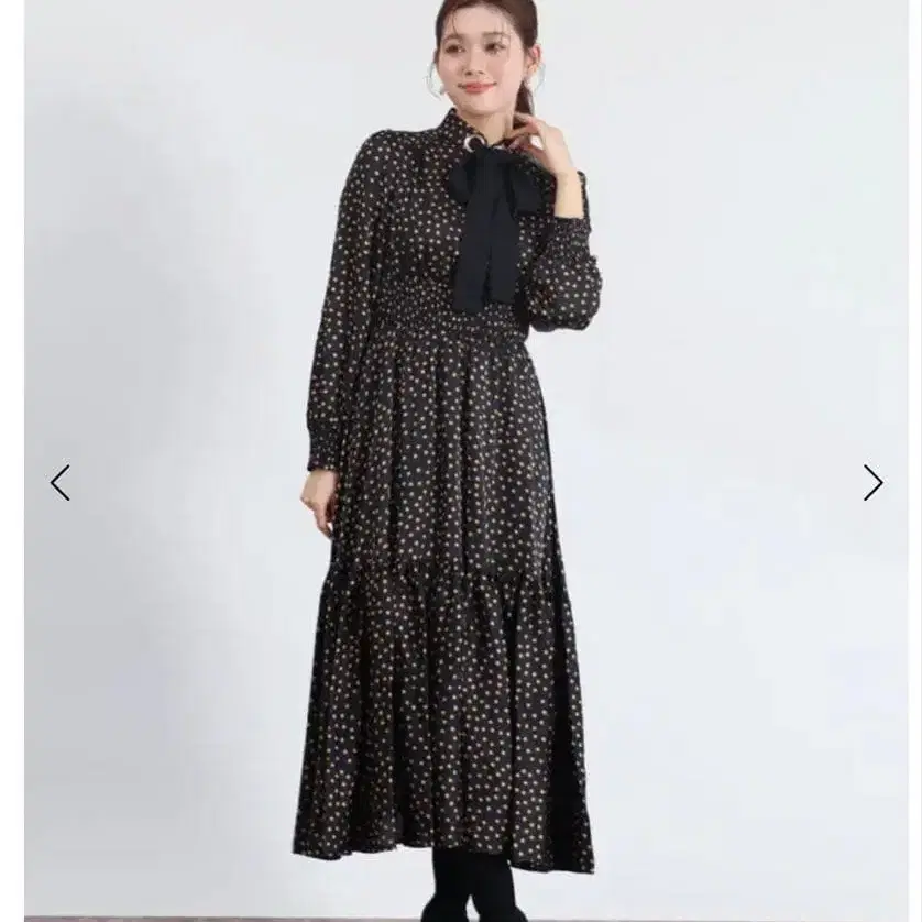 FENNEL 프론트 리본 도트 원피스 YAMADAYA M 블랙