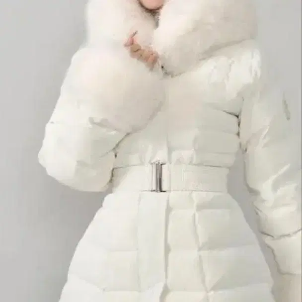 미셸 마카롱 미각 슬림 인조 모피 다운 코트 프리 사이즈 화이트