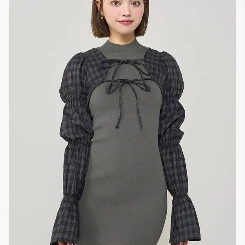 BunnyLis 퍼 볼레로 x 체크 미니 원피스