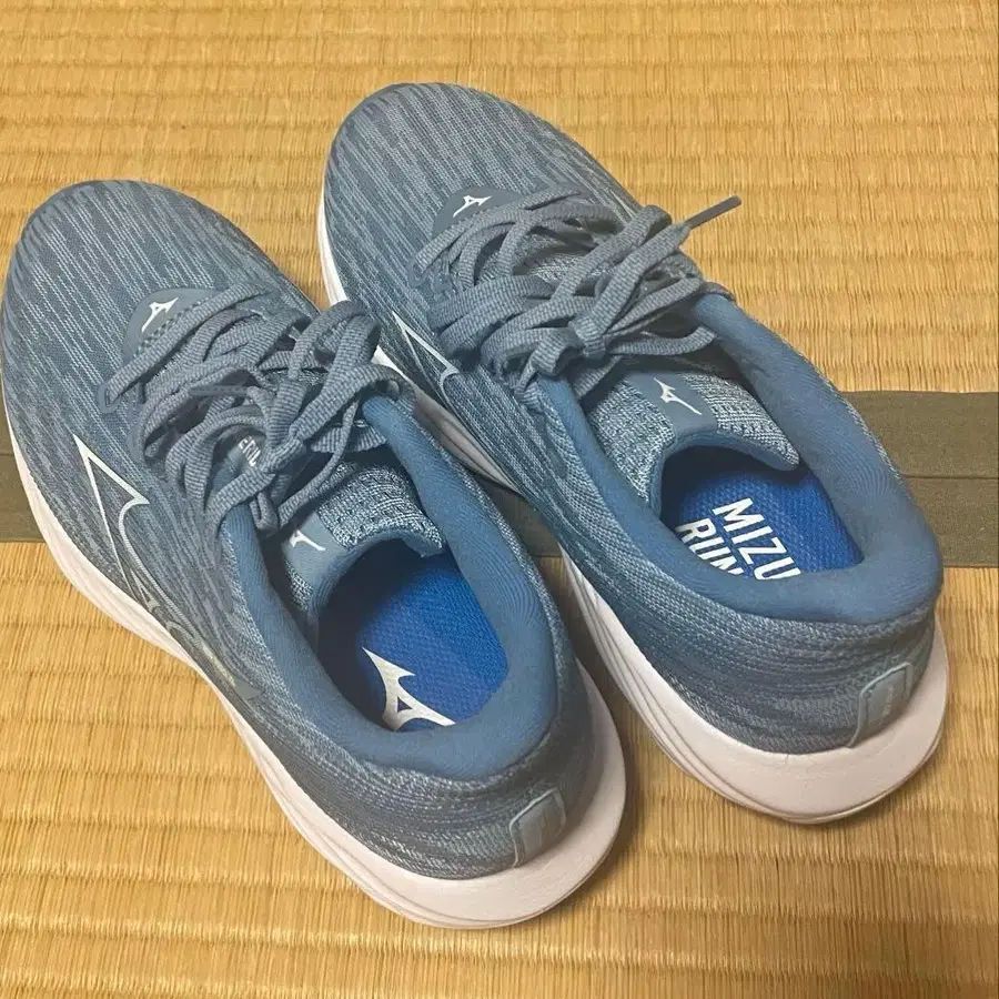 자동 번역되었어요. 원문보기경량으로 쾌적한 Mizuno 러닝화, 파란색 디자인.