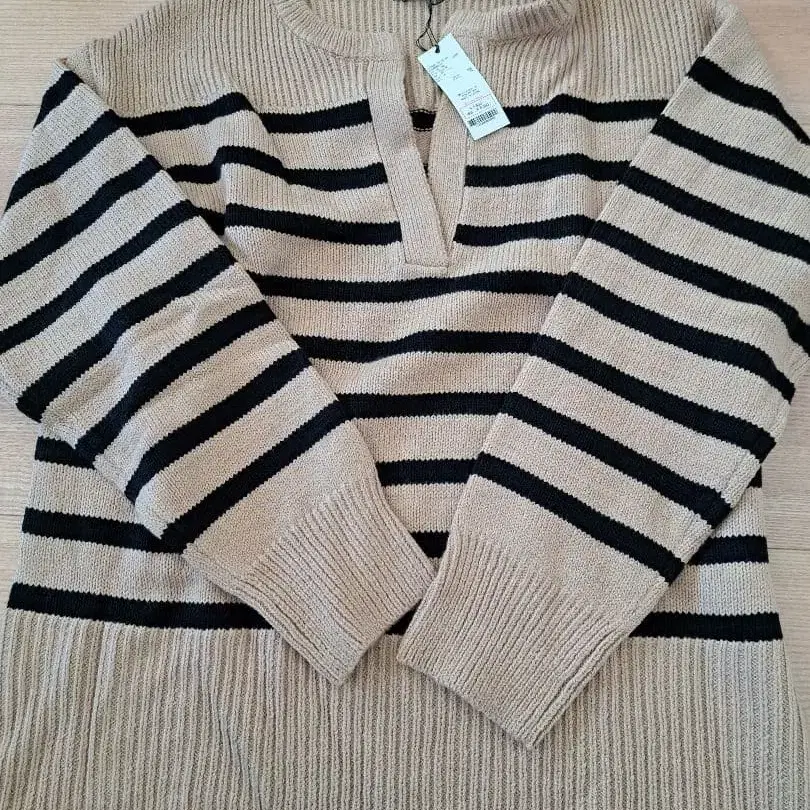 베이지와 블랙 스트라이프 니트 스웨터