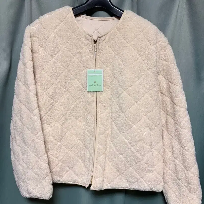크림색 퀼팅 디자인으로, 프론트 지퍼가 달린 플리스 자켓. - 브랜드: Petit Honfleur - 색상: 크림 사이즈 - L 정가 10000엔 정도입니다.