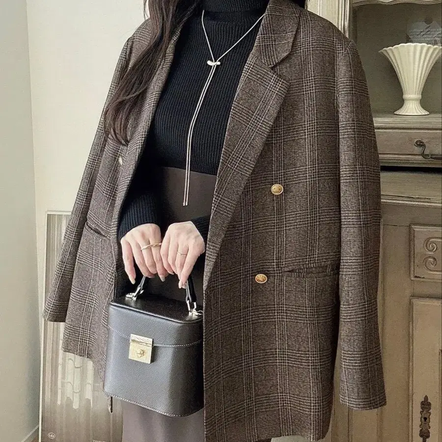 emmi 노카라 체크 자켓