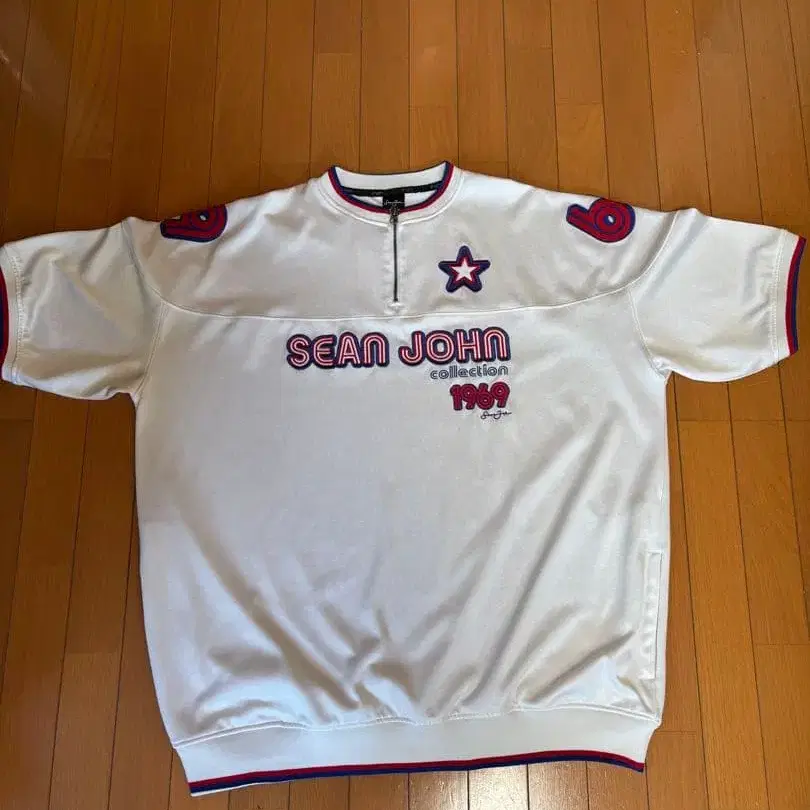 화이트 색상의 폴리에스테르 소재, 자수 로고가 있는 반팔 T셔츠. - 브랜드: Sean John - 사이즈: XXL - 소재: 폴리에스테르 100% - 색상: 화이트 - 디자인: 반팔, 지퍼 있음, 자수 로고 방문해 주셔서 감사합니다. 사이즈 - 2XL(3L) 기장 86 가슴 너비 75 ⭐️ 상식적인 범위 내에서의 가격 협상 가능합니다!!