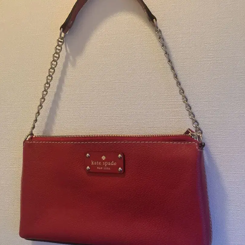 레드 색상의 도트 무늬 내부, 체인이 달린 숄더백입니다.