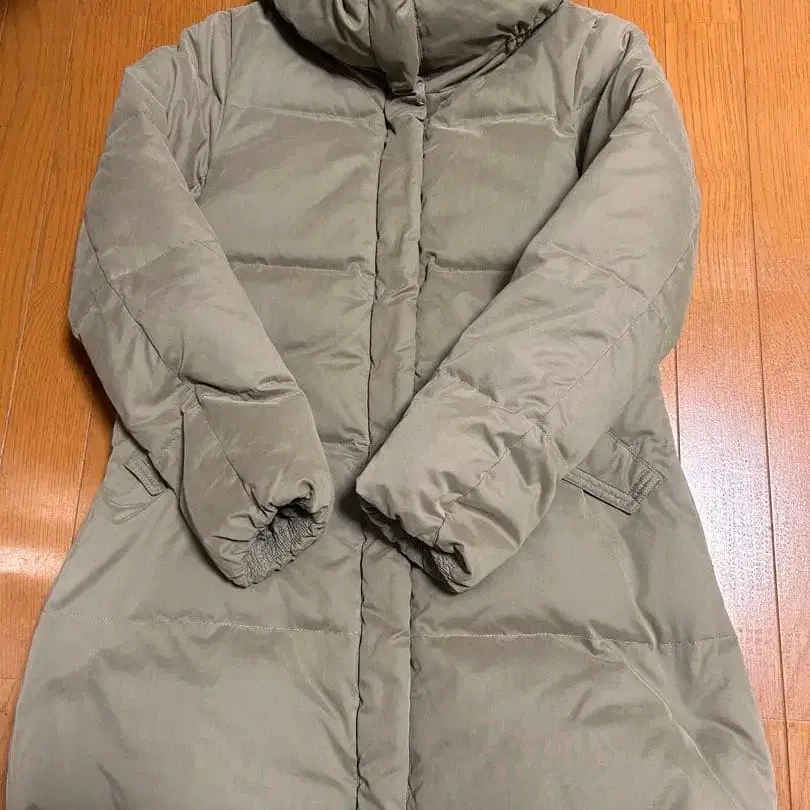 새상품급 허니 다운 자켓 구스 다운 후드 수납 더블 지퍼 브라운