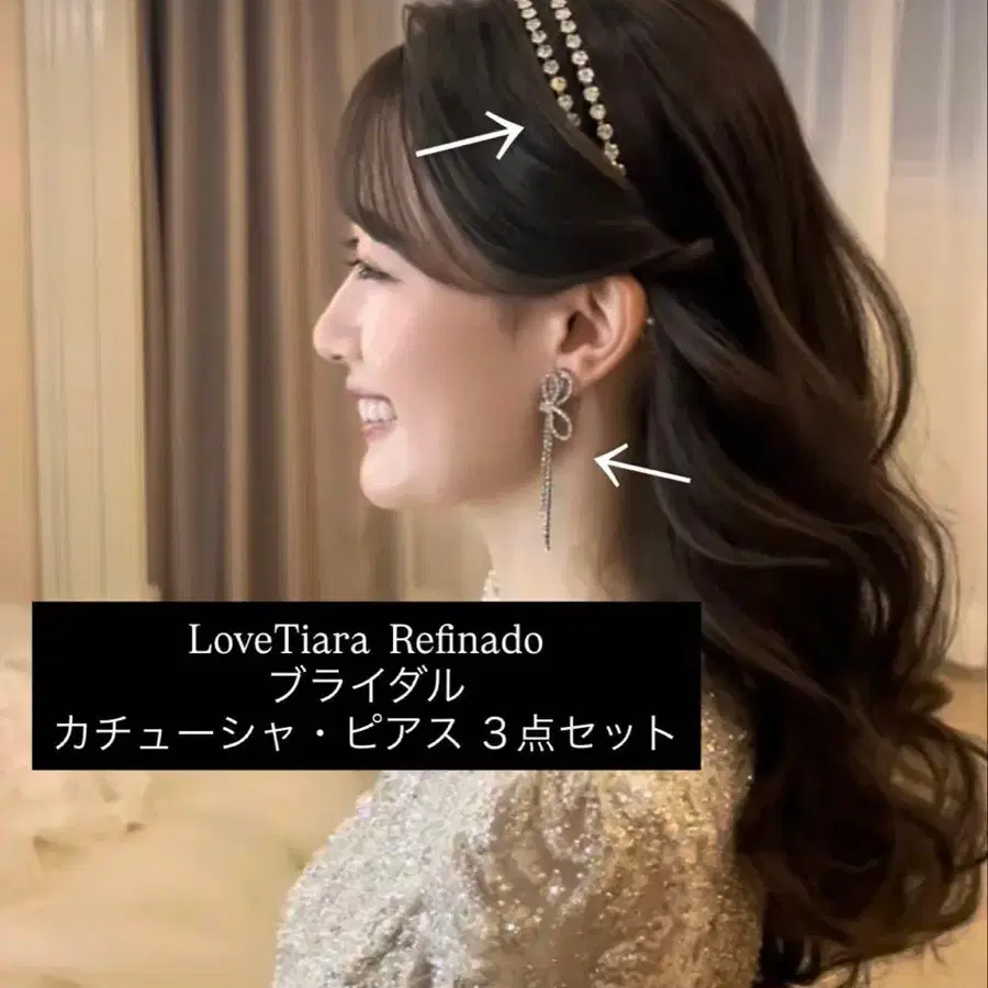 아나운서 모치즈키 레이나가 착용했던 브라이덜 머리띠와 리본 귀걸이 세트입니다.