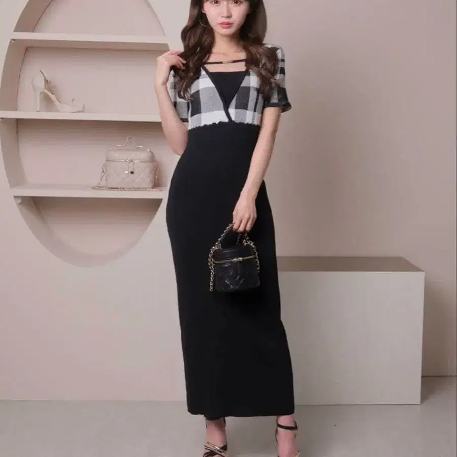 LIP SERVICE 체크 자카드 데콜테 오픈 원피스