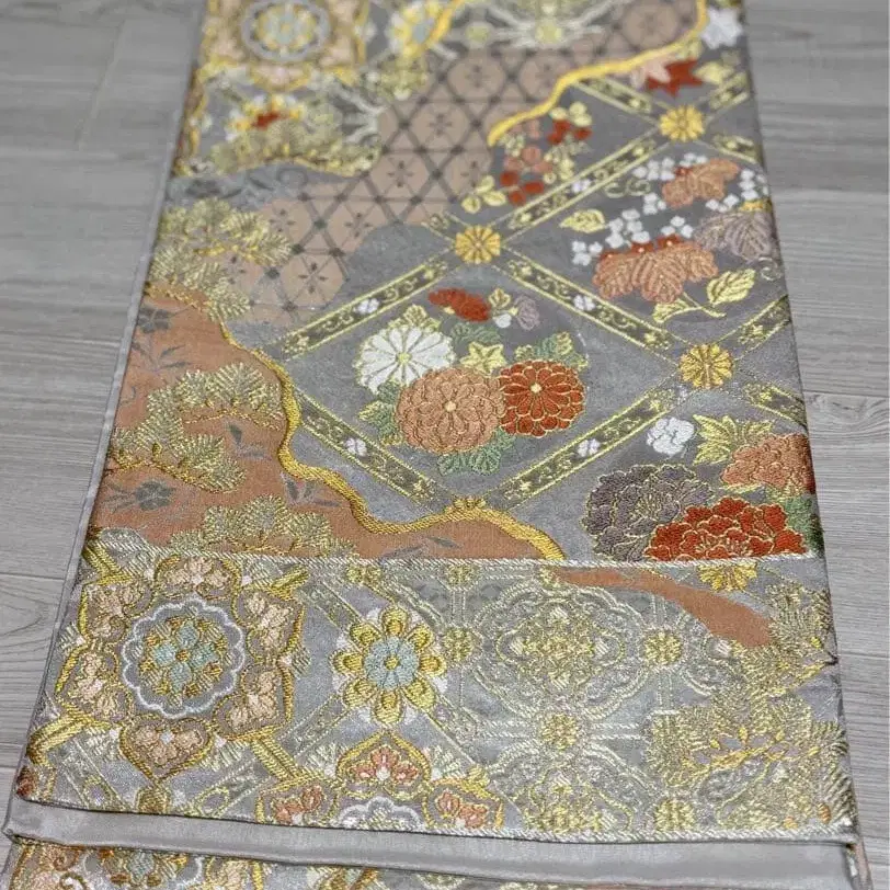 후쿠로 오비 촉강화문 금채 순수 실크 미츠코시