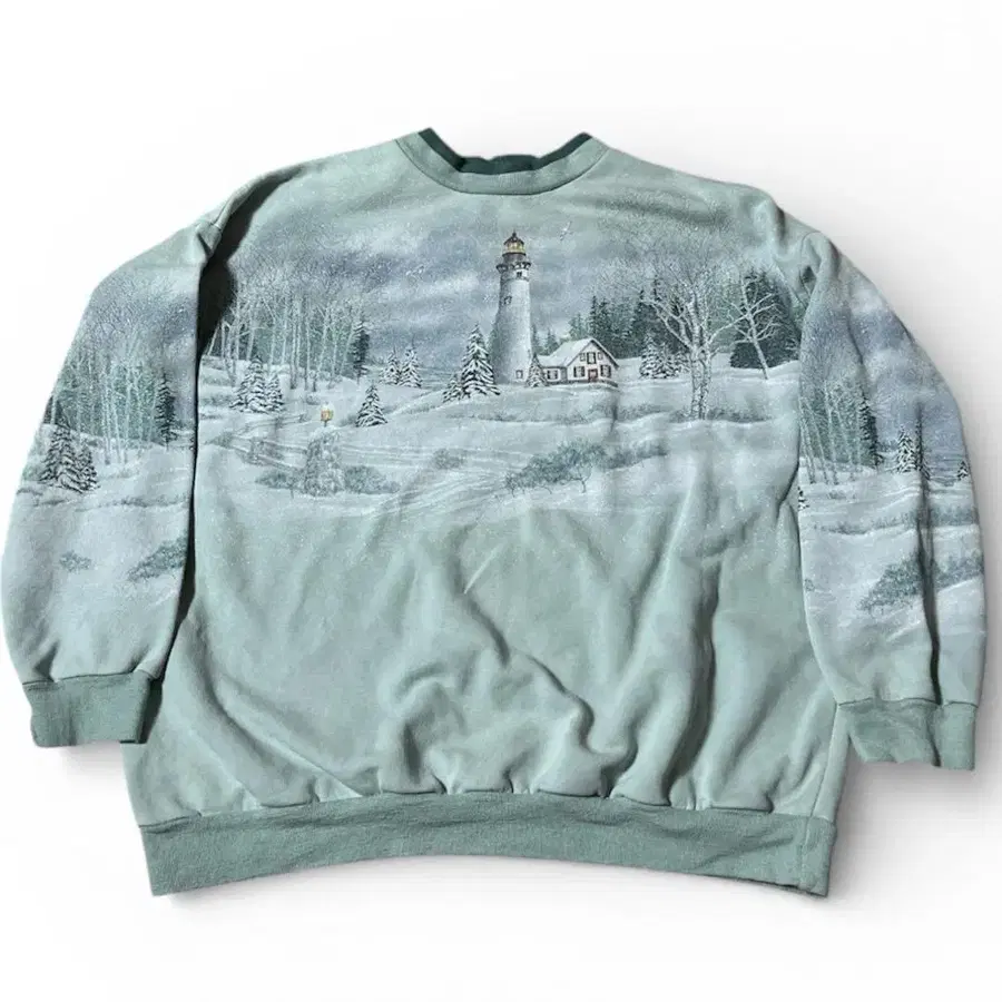 녹색 등대 설경 프린트 맨투맨 트레이닝복