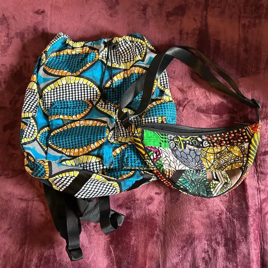 자동 번역되었어요. 원문보기아프리카 스타일의 컬러풀한 패턴이 인상적인 백 2개 세트입니다.