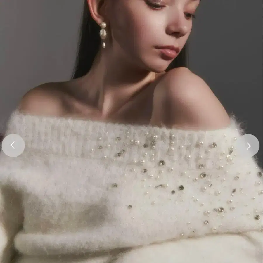 알파카 샤기 비쥬 오프숄더 니트